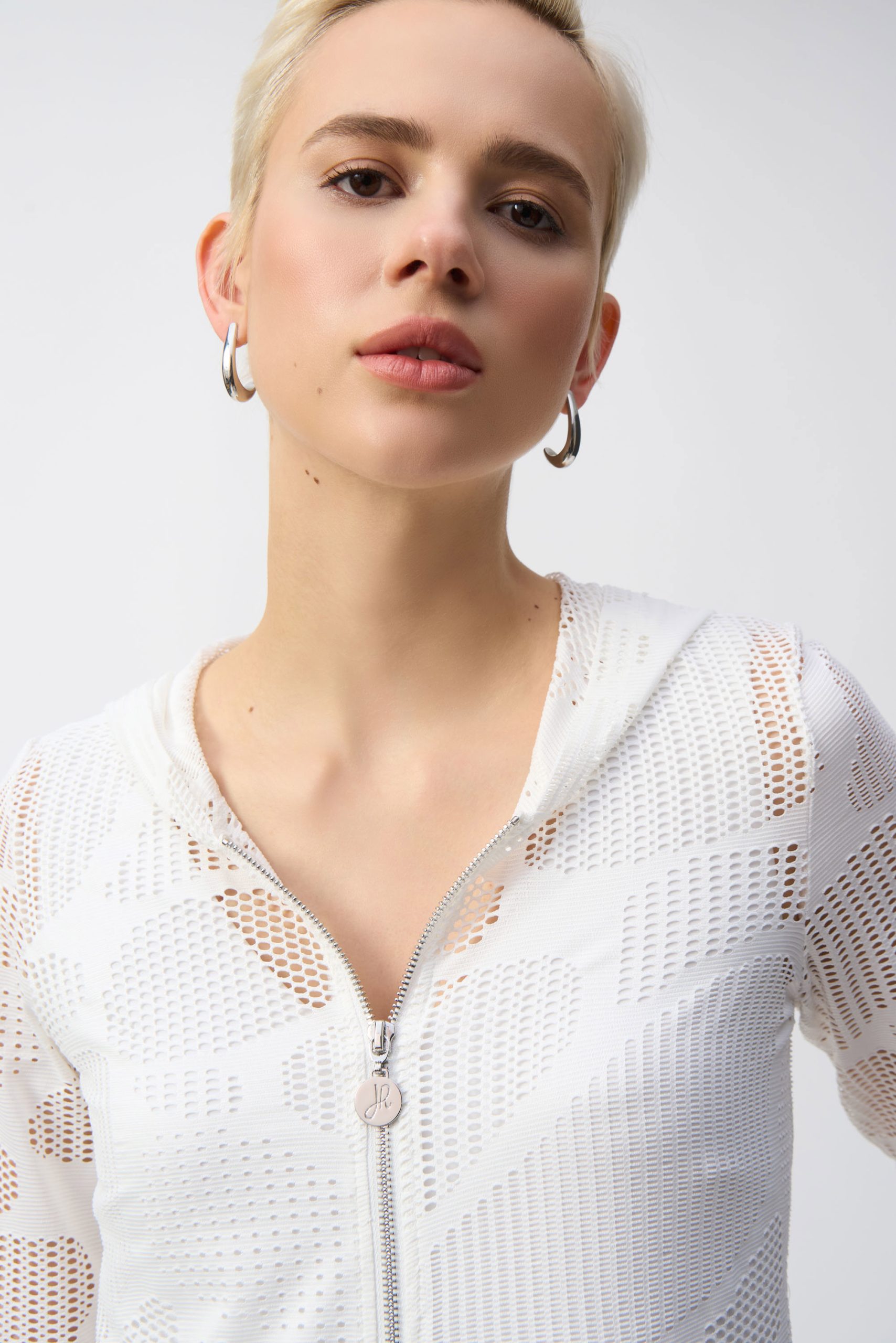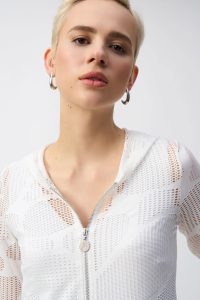 Ta lekka kurtka oferuje stylowy sposób na okrycie się dzięki teksturowanej dzianinie i modnemu kapturowi. Ma prosty krój, a także wygodne kieszenie boczne i zamek błyskawiczny z przodu.