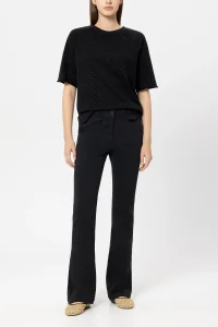 Miękka bawełniana bluza o luźnym kroju ze ściągaczami u dołu i przy dekolcie. Krótkie rękawy raglanowe z surowym wykończeniem i błyszczącymi, naszytymi cyrkoniami dodają jej stylowego charakteru.