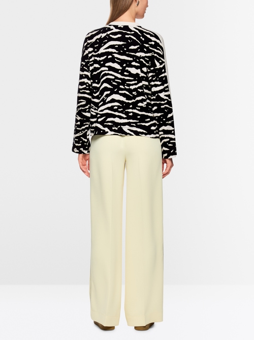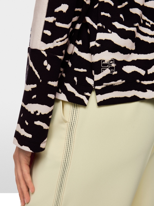 Ta koszula z cienkiej dzianiny prążkowanej wyróżnia się modnym zwierzęcym nadrukiem. Ma luźny krój i nieco szersze rękawy. Miękka mieszanka bawełny i niewielkiej ilości elastanu zapewnia wygodę noszenia.