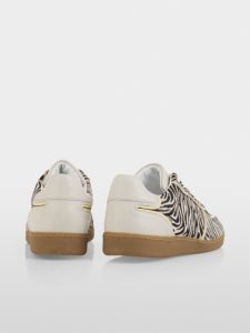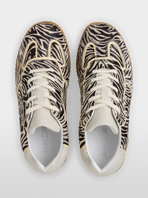 Sportowe i nowoczesne, sznurowane trampki z nadrukiem ze skóry cielęcej. Płaska podeszwa i lekkie akcenty na języku i pięcie. Wysokiej jakości mieszanka materiałów gwarantuje wygodę noszenia i trwałość. Uniwersalne i łatwe do łączenia – idealne do modnych, codziennych stylizacji.