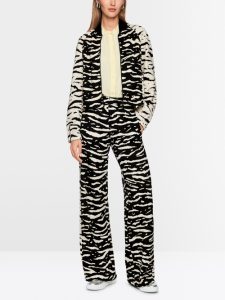 Ta sportowa kurtka typu blouson przyciąga wzrok. Zachwyca zwierzęcym nadrukiem na całej powierzchni i luźnym krojem. Jej długość jest lekko skrócona, a mankiety zakończone są ściągaczami dla idealnego komfortu. Przyjemnie miękki materiał scuba jersey sprawia, że ​​kurtka idealnie nadaje się na co dzień. Dzianinowy kołnierz i praktyczne kieszenie po bokach.