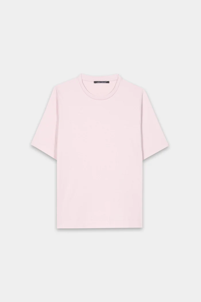 Klasyczny T-shirt z organicznej bawełny o prostym kroju, z okrągłym dekoltem i krótkimi rękawami. Szerokie ściągacze i mankiety podkreślają swobodny styl.